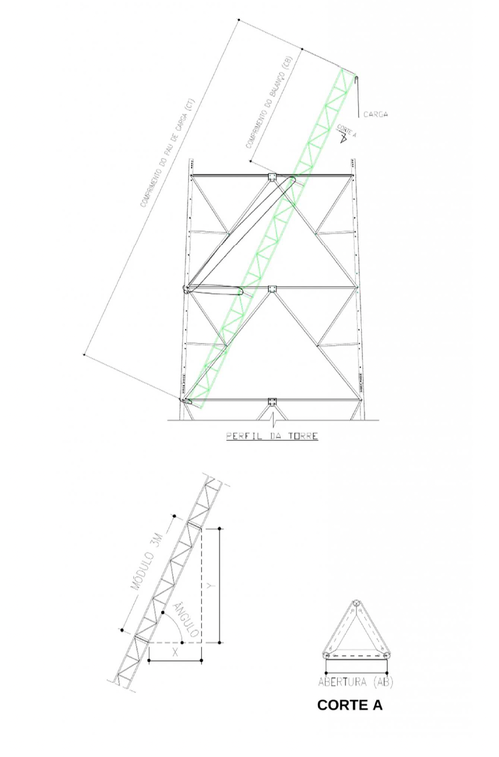 2. Dimensionamento do Equipamento: Garantir que o “Pau de Carga” e o guincho sejam adequados para o peso e as dimensões dos módulos da torre a serem içados. As especificações técnicas do “Pau de Carga” devem ser rigorosamente seguidas, incluindo sua capacidade de carga e os pontos de ancoragem.