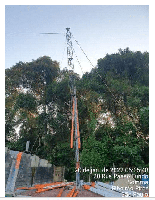 O processo de montagem da torre com o “Pau de Carga” segue uma sequência lógica: